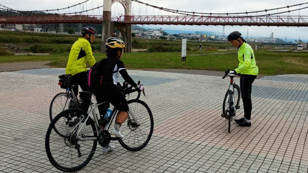 その後、石川サイクルラインを走りながら実地講習です。路面の変化に注意して走ること、コーナーでのスピードコントロールなどを現場感覚で確認します。