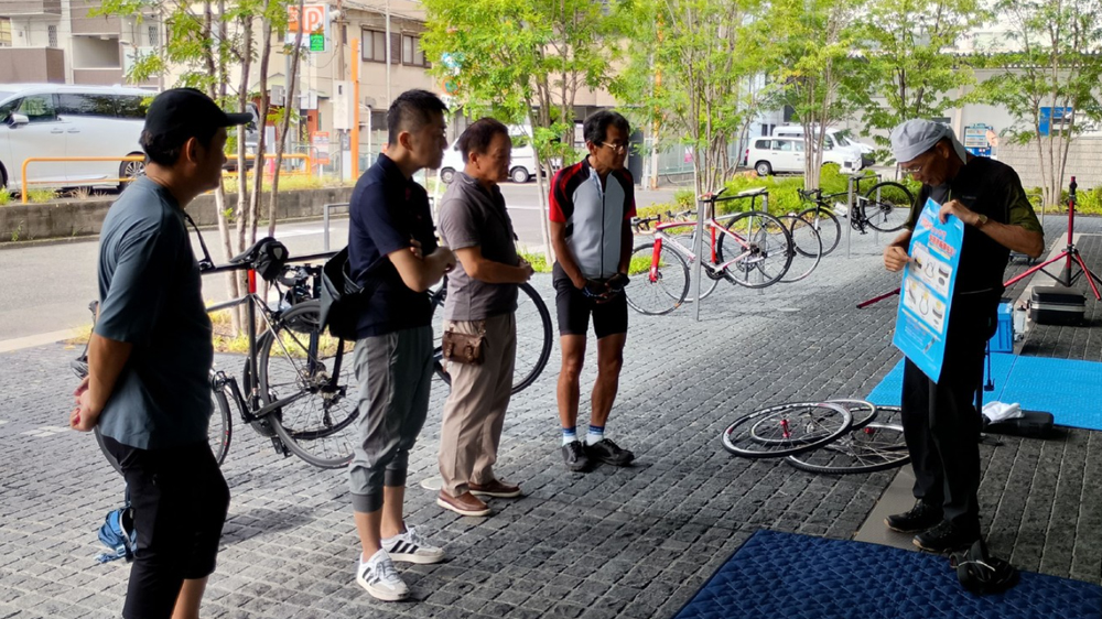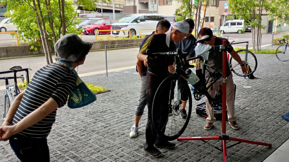 この日は、バーテープの巻き方講習とパンク修理に分かれての講習、そして変速機の調子が悪いときの対処について勉強しました。