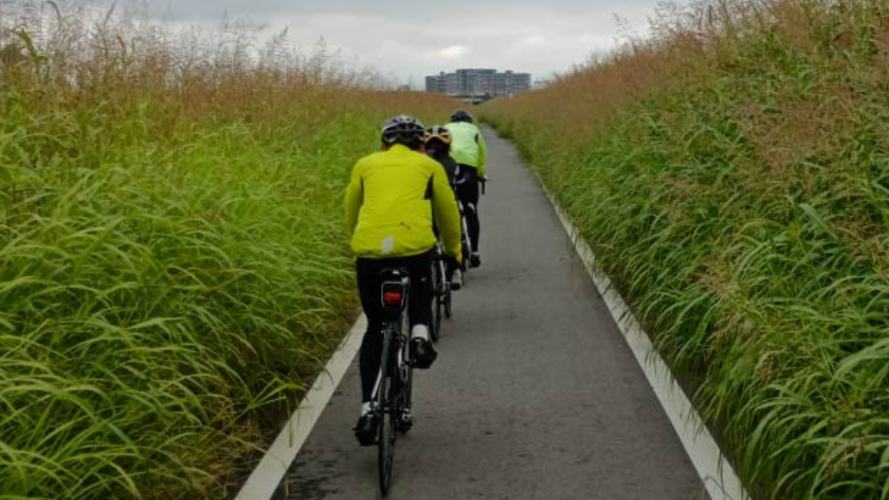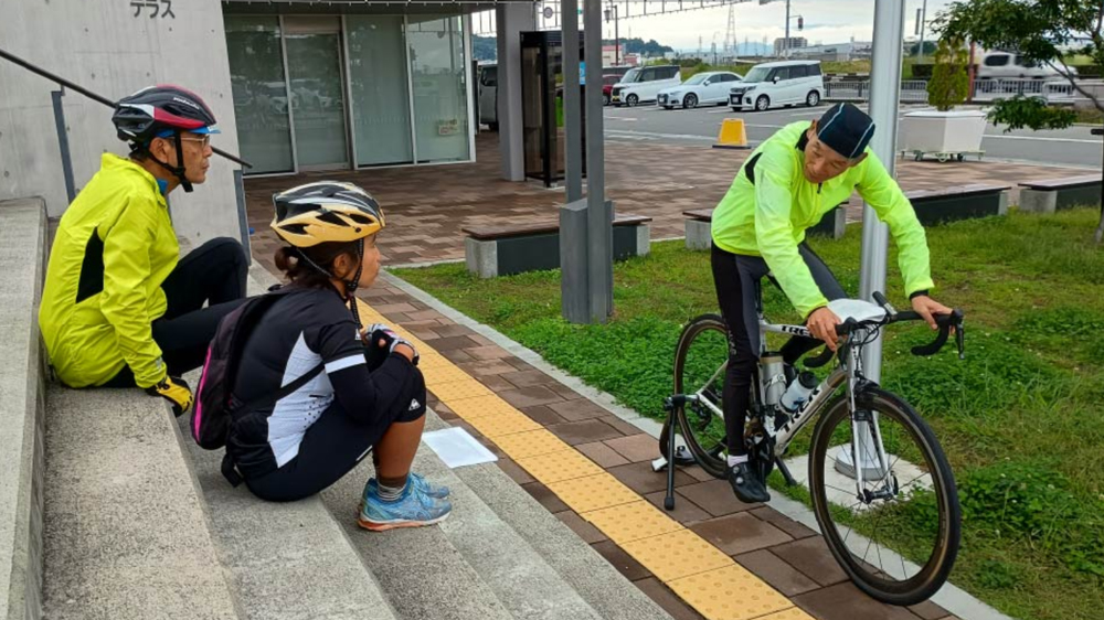 その後、石川サイクルラインを走りながら実地講習です。路面の変化に注意して走ること、コーナーでのスピードコントロールなどを現場感覚で確認します。