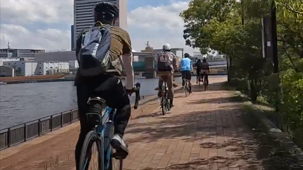 暦では秋とはいえ、快晴で暑い中、シマノ自転車博物館を出発。