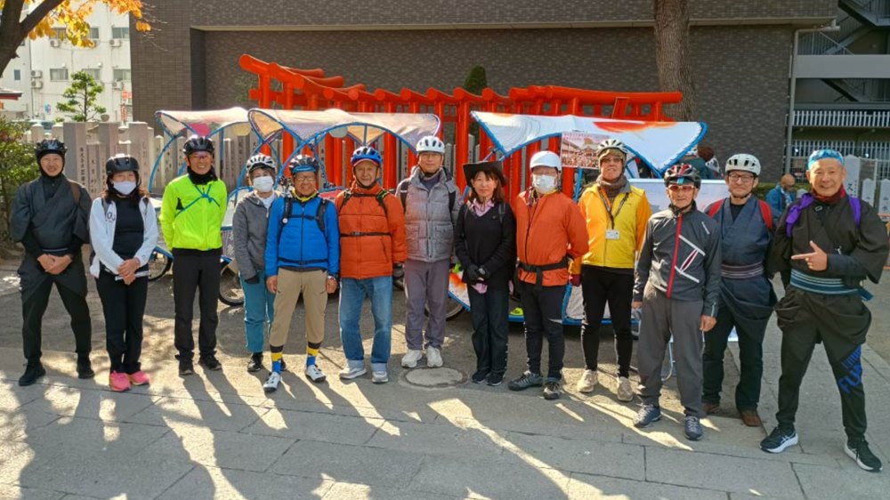 丁度、このイベントに合わせて来ていた堺自転車タクシー(シクロ・ヴォーチェ)の車夫の方々に遭遇。妖怪忍者かと見まがうところでした。
